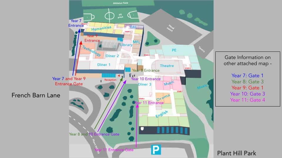 Students should enter through their Year Group Entrance Gate at the start of the day.