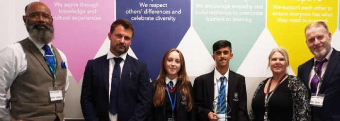 Students and staff were awarded a special trophy by Manchester City Council to celebrate a successful co-production project with the Council’s Early Help Team.